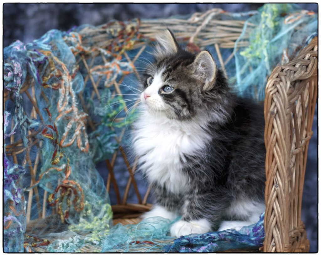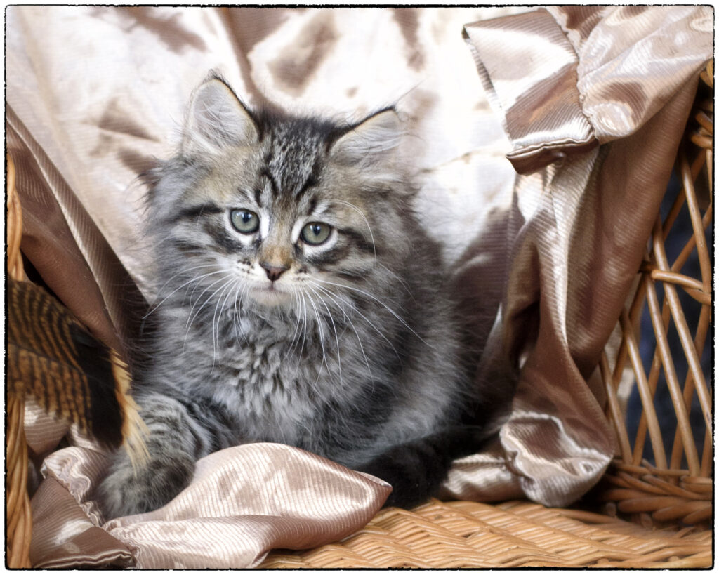 Nora was bred in late February, with an anticipated date of birth at the end of April; we’re waiting to verify pregnancy. Expected colors: Tabbies, both mackerel and classic. Possibly colorpoints. Black, potentially blue/grey. This litter will be sold untested. Host: Kennedy family