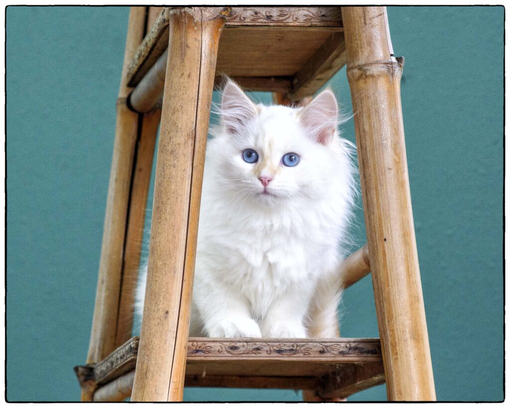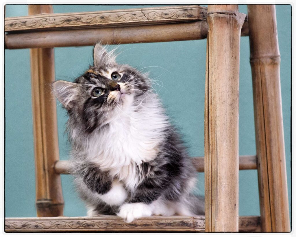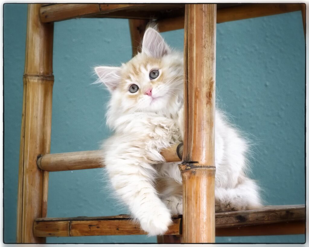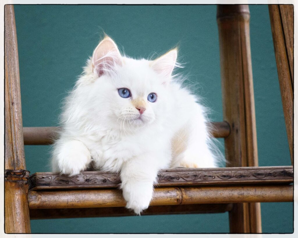 … loves to run, play, and climb. She tends to choose her roll-and-tumble opponents based on size, going for the biggest she can find. At the same time, she’s gentle and sweet, happy to lie near you for nap time. Qatarina’s beautiful coat will stay cloud-soft with regular brushing. She’s good with soft paws, and will love a family with lots of active play.